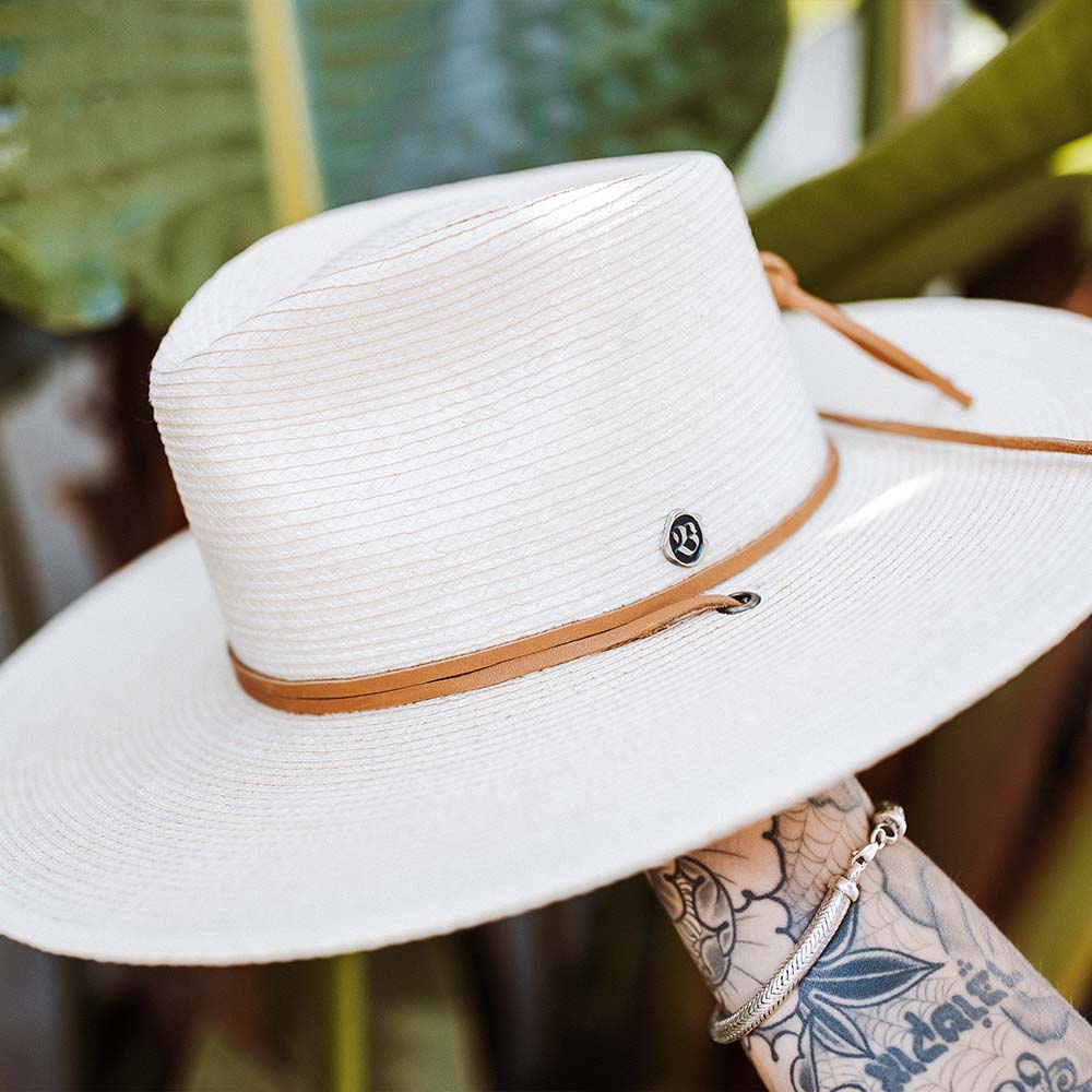 Get ready to spend your summer days basking in the sun. Made with sustainable Guatemalan palm braid straw, the Canyon Moon wide brim hat is equipped with a UPF50+ sun protection rating and a 4 inch brim that will keep you shaded and protected all day long.