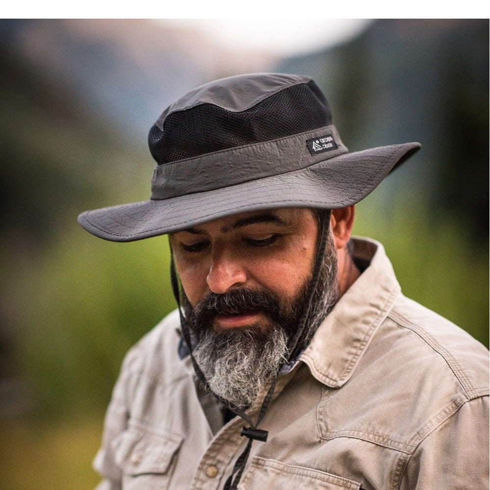 With a mesh-vented crown, this safari hat is excellent for all sorts of summer outings. It's neutral and subtle but utterly functional. It's the ideal hat for an outdoorsperson who also likes curling up by the fire.