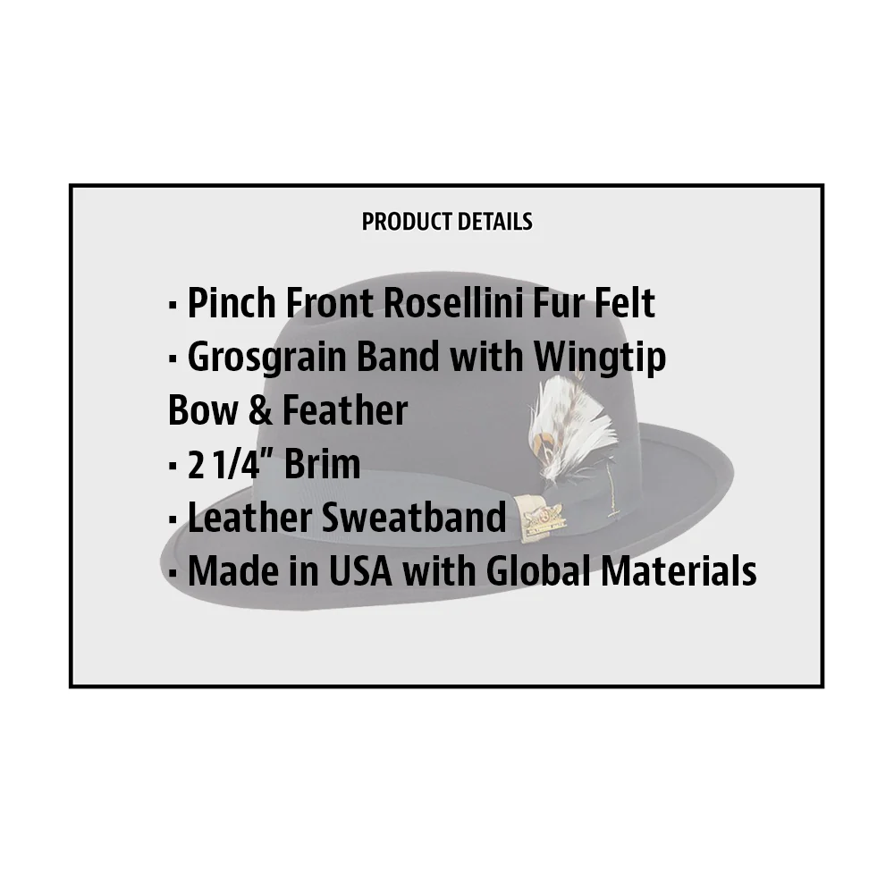 Similar to a classic item, this fedora is made in the USA. Its extremely smooth fur felt has a soft and flexible texture, and the special finish will surely enhance your outfit. Grab this fedora when you want to dress up.