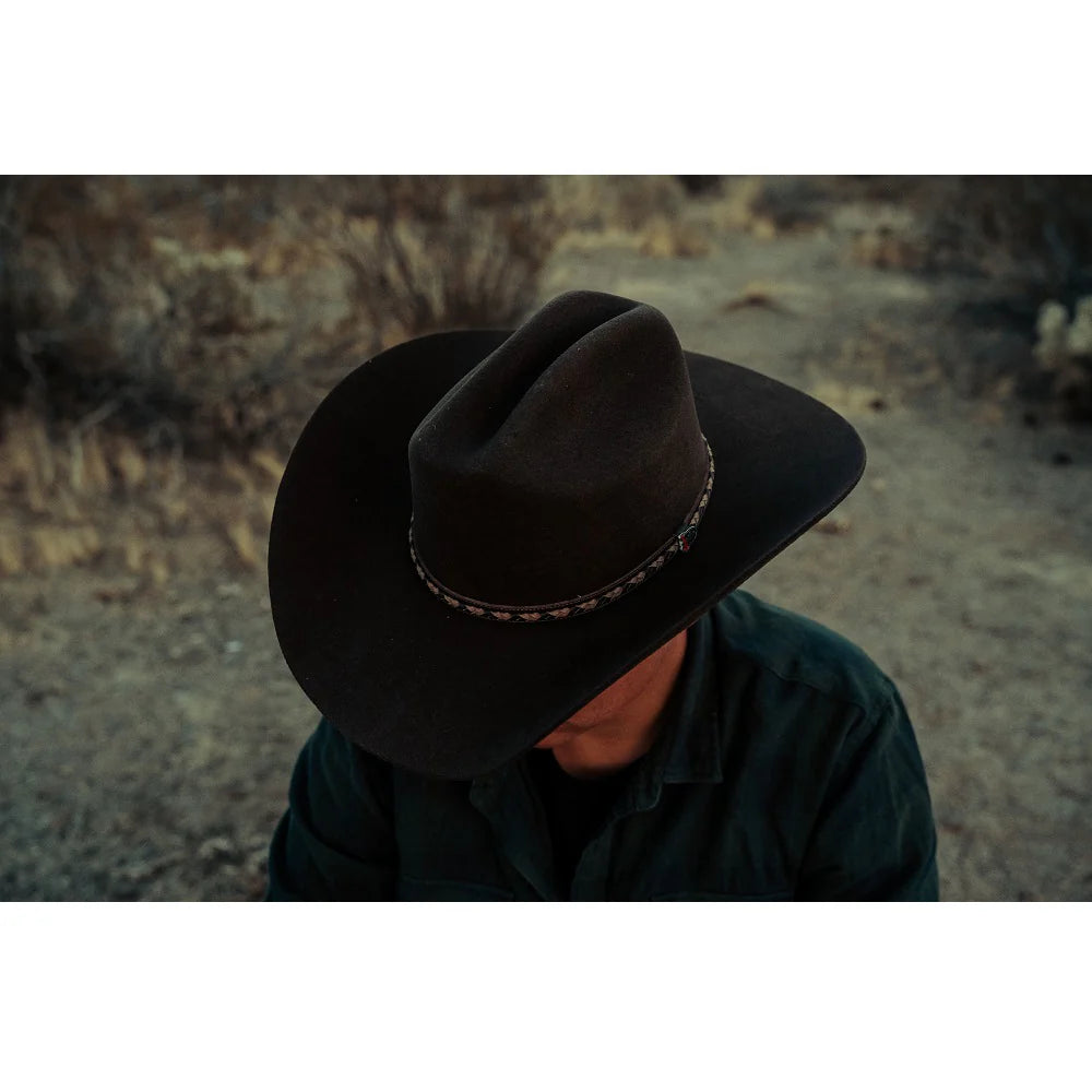 If you're looking for your new staple, this is it. The Plains 2X wool western by Justin is a distinctive, yet tasteful style. It's 4" brim and braided leather rope band complete any outfit to perfection.