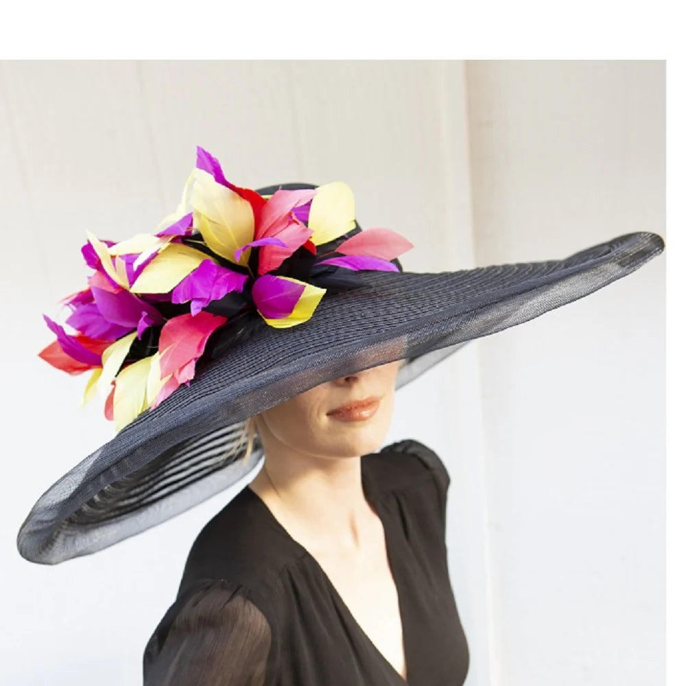 The Kentucky Derby is as much a fashion show as it is a horse race, and your sinamay round crown hat with multi-colored feathers will give you the pop you need with minimal effort.
