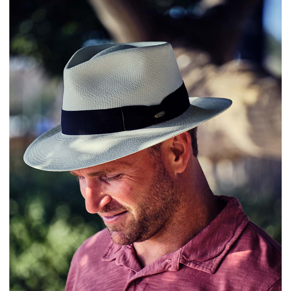 Although a vintage style is trendy, it's not always well-executed. This hand-woven Panama straw fedora ensures that your nod to the past remains fashionable today. Assembled with a 16-ligne grosgrain band, this accessory will make your next beach vacation unforgettable.
