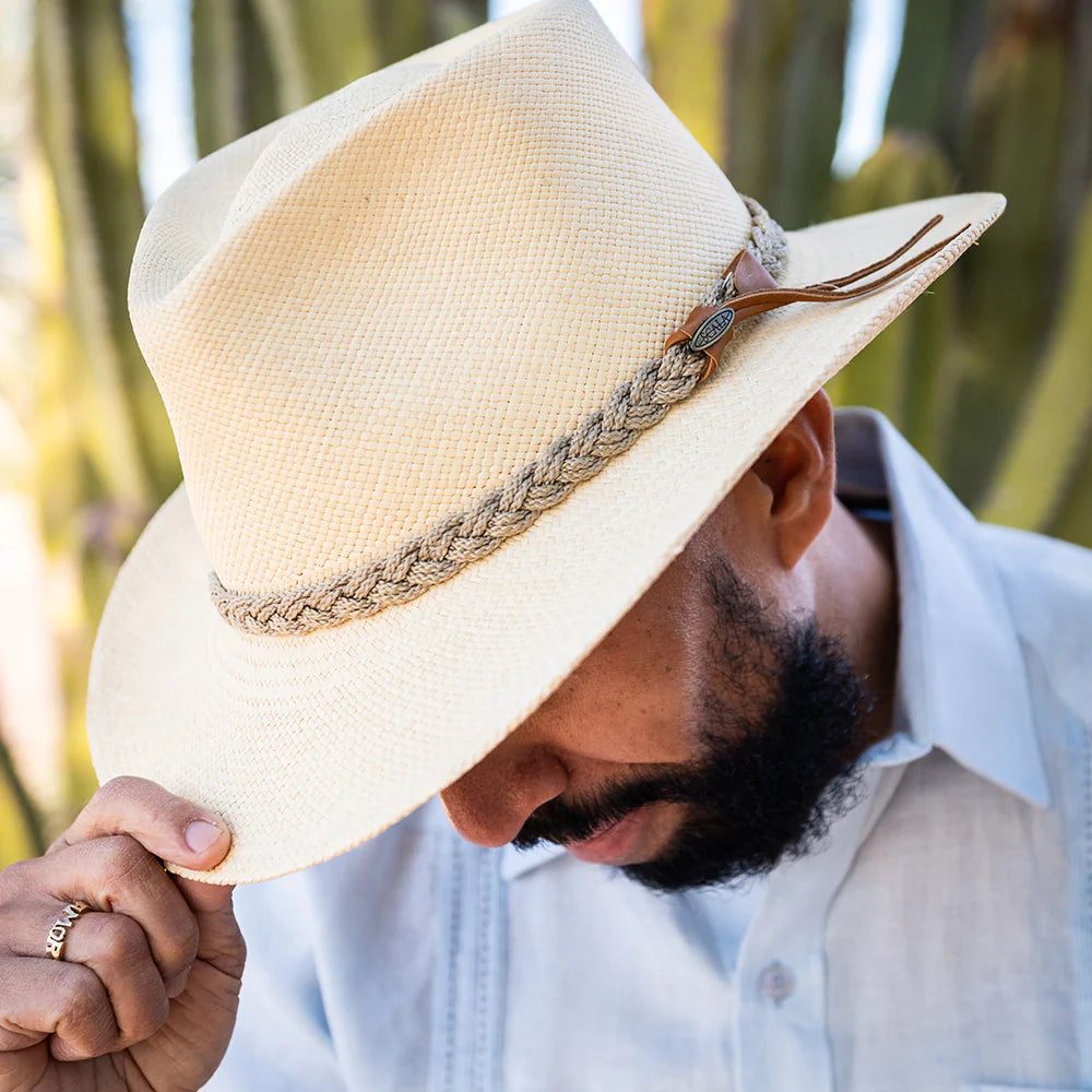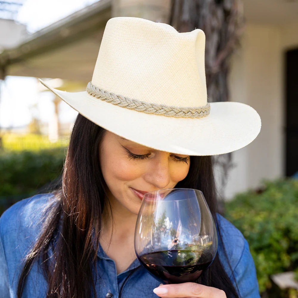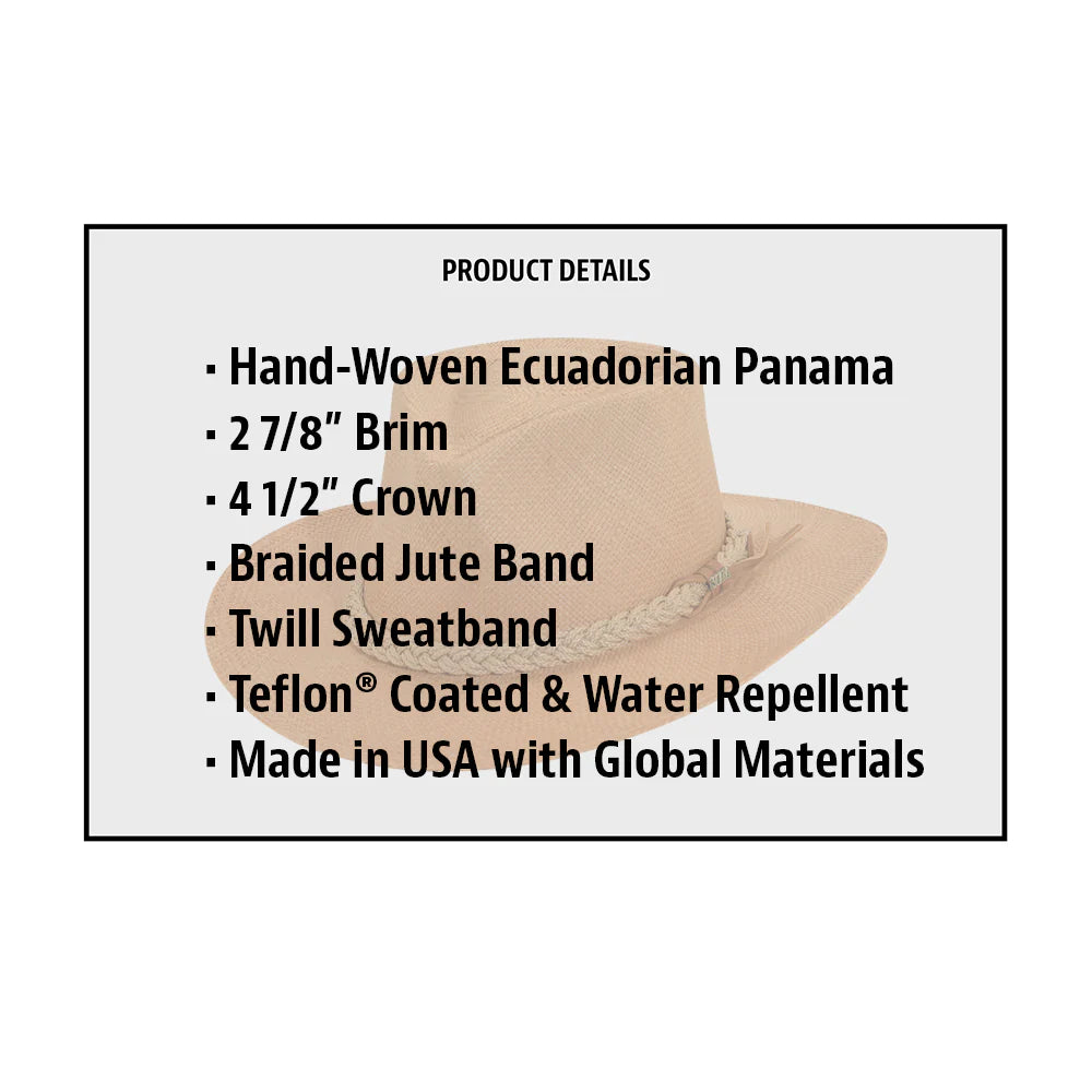 There's nothing more classic than this America-assembled panama straw hat. This wide-brimmed outback-style hat with a braided jute band will keep you cool and your outfit stylish.