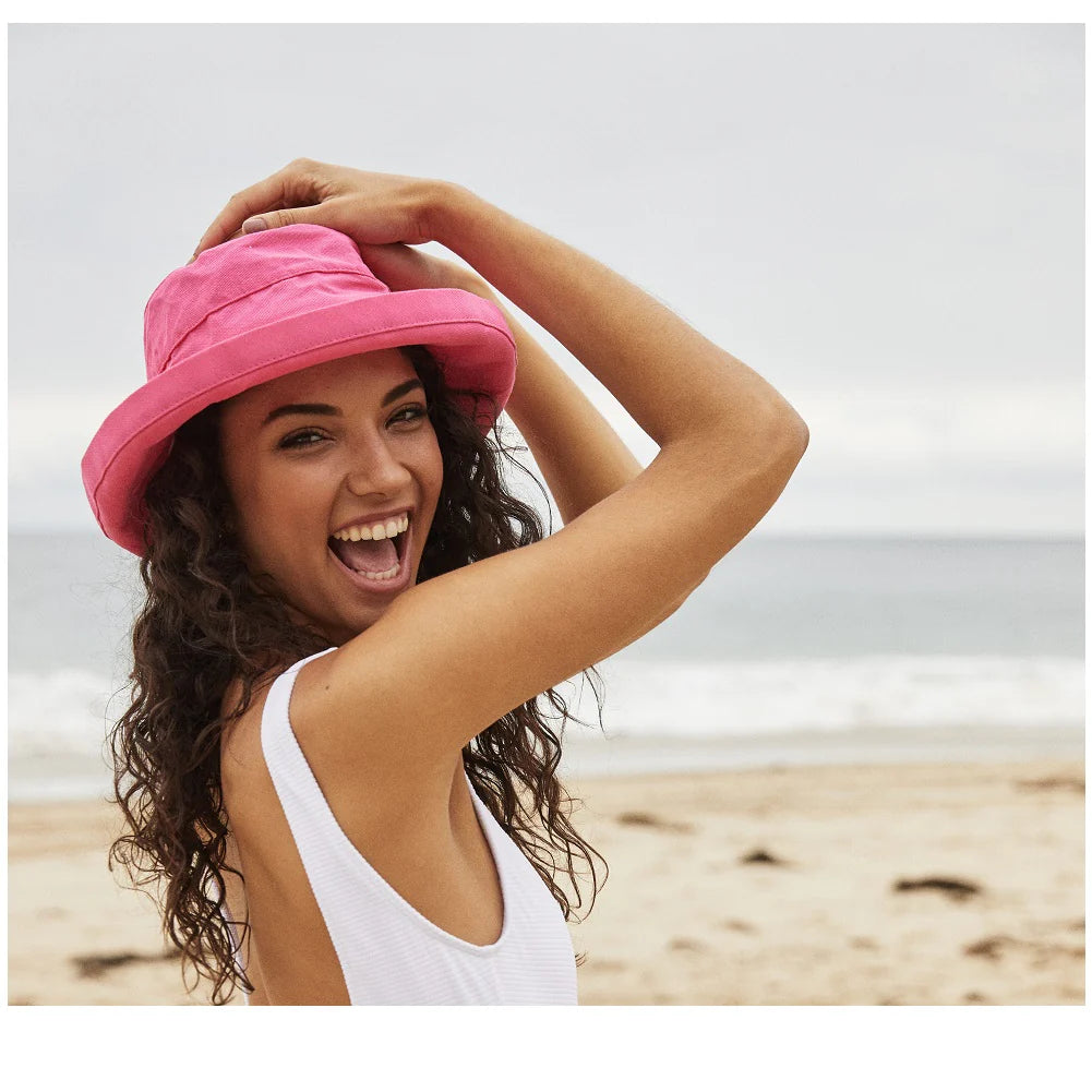 Made with sun protection in mind, this cotton round crown with upturned brim will let you rest poolside peacefully without worry of too much vitamin D.