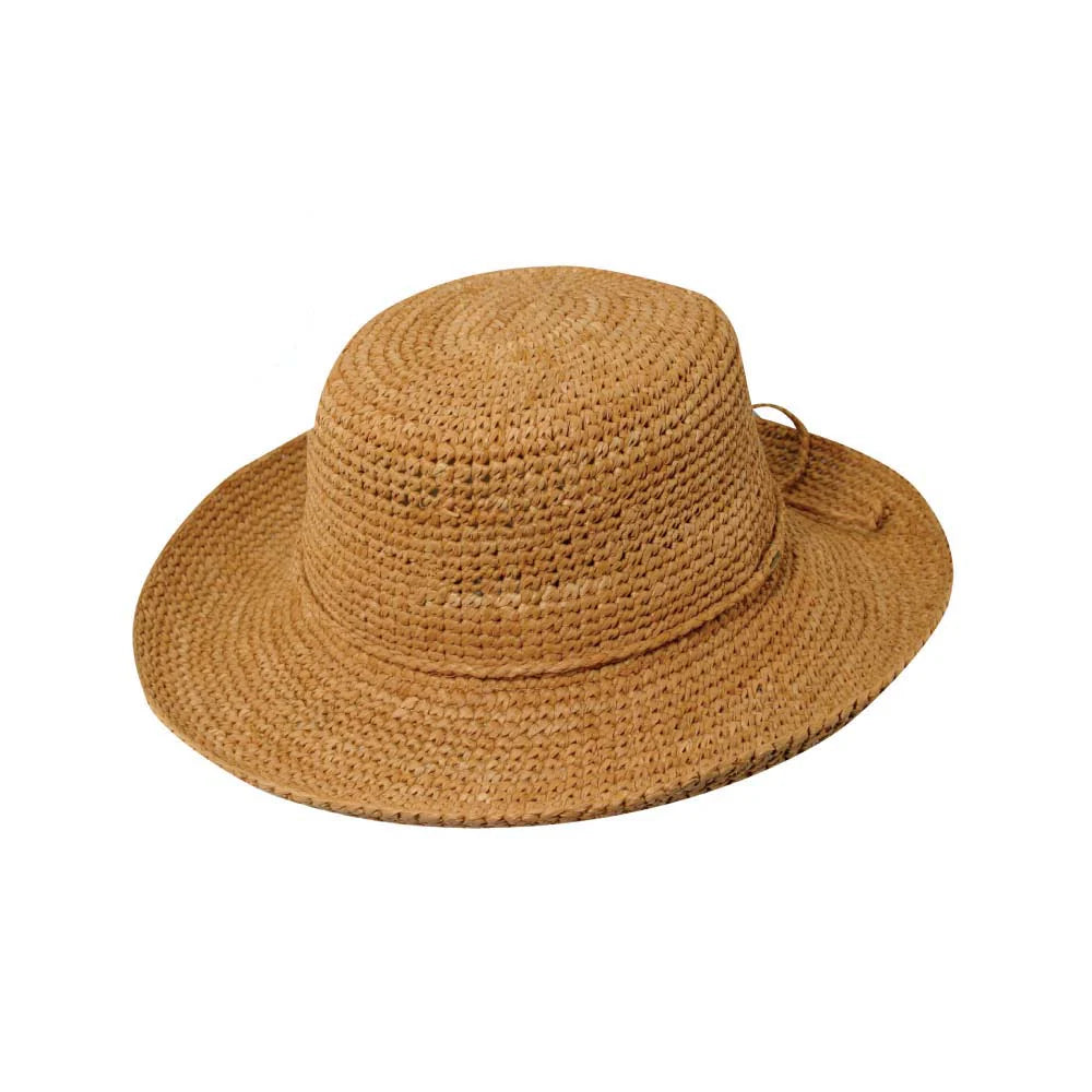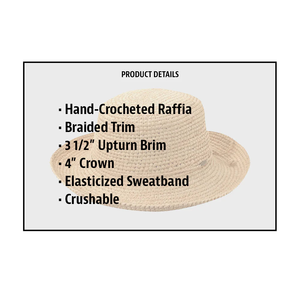 The Scala Collezione offers little to be desired. The hand-crocheted raffia straw round crown is everything you desire in a sun hat. The quality is unmistakable, yet the hat is still crushable and packable, perfect for traveling around the world or just traveling down to your nearest beach.