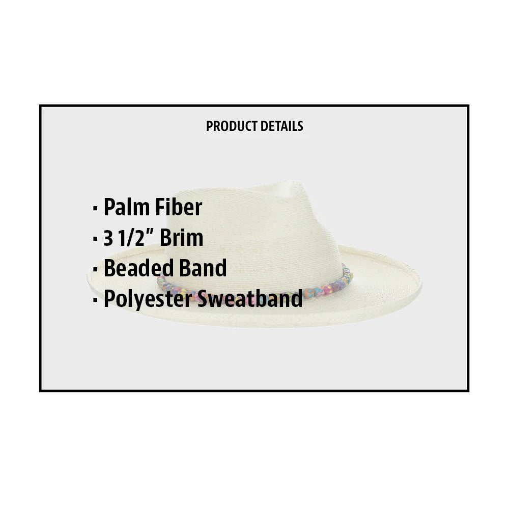 There's no better way to improve an already wonderful day than with a sustainably made sun hat. The unique beaded band gives this hat just the right amount of "pop" to make an entrance at the beach, pool, or wherever the sun takes you.