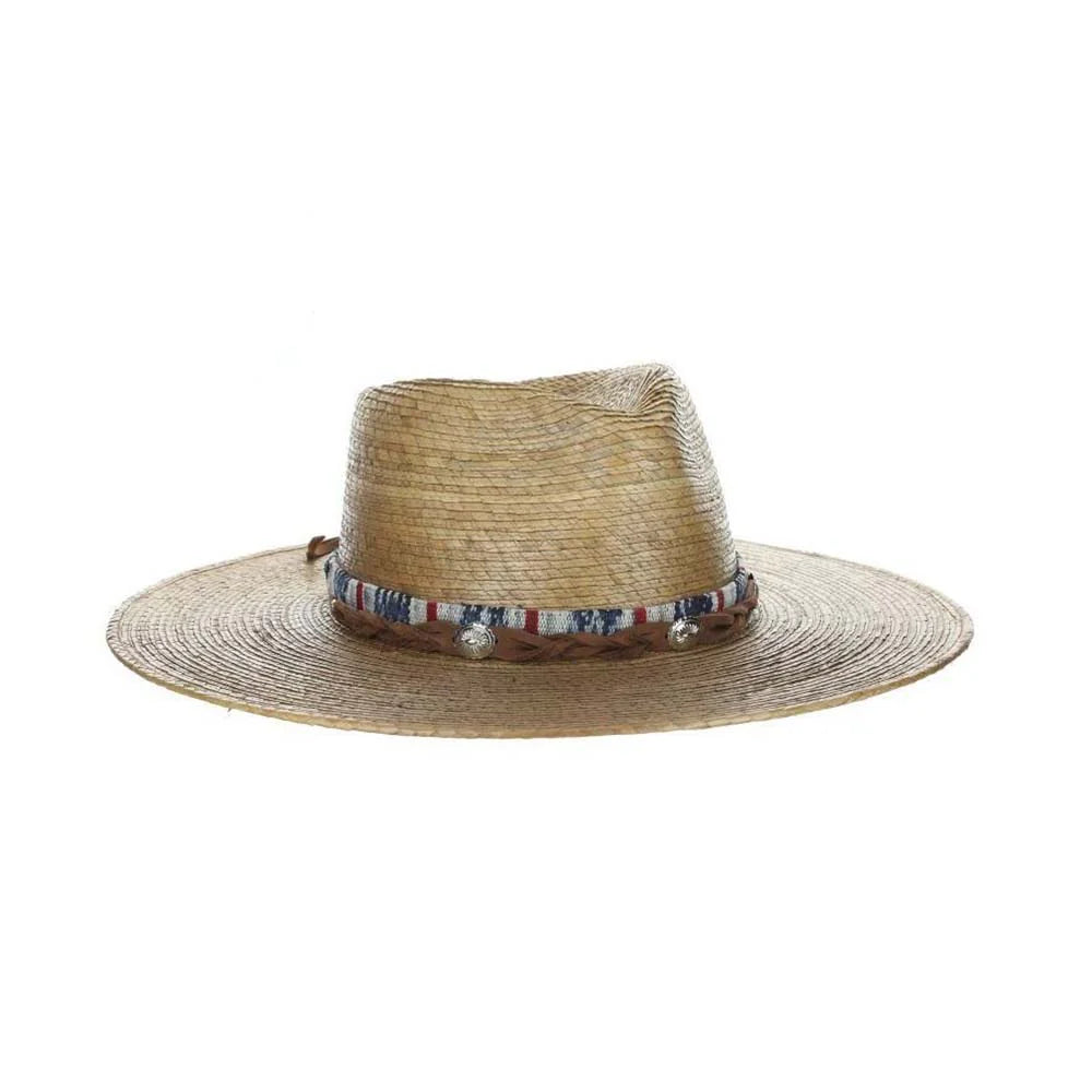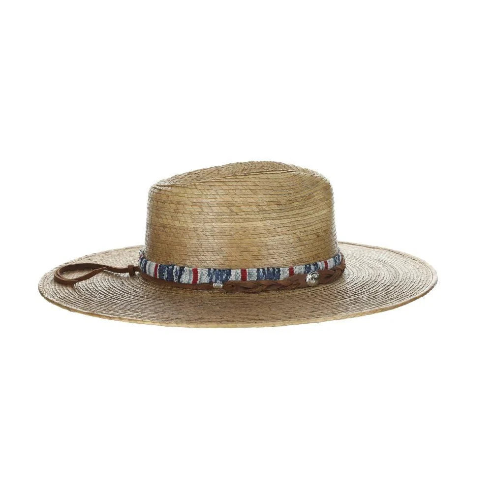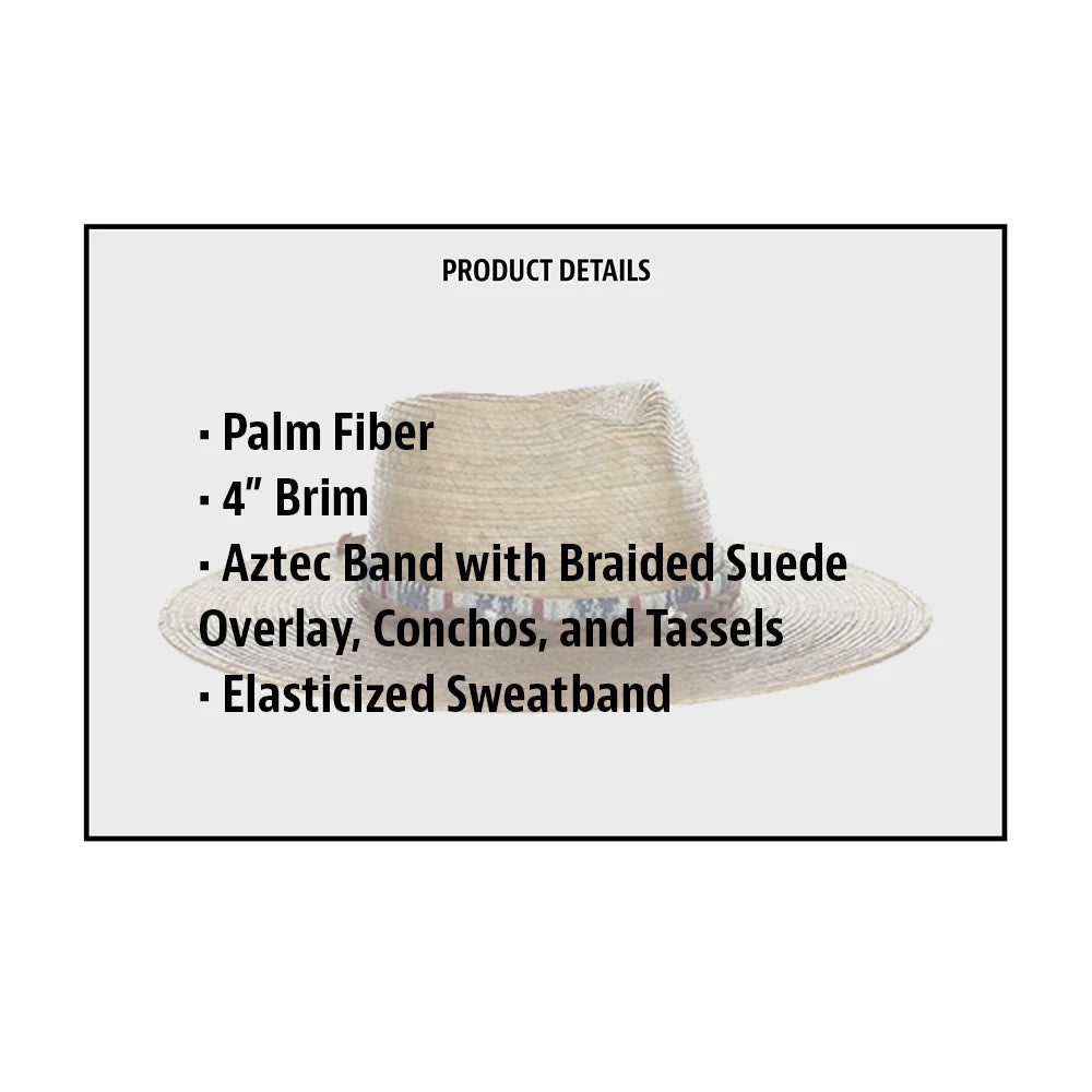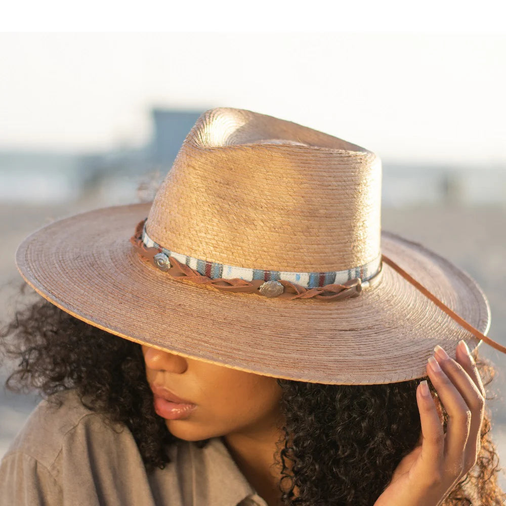 This safari hat has a lot going on. - in the best way possible. The Laeila features a unique Aztec band with a braided suede band overlay, adding many layers to this hat. Plus, it's made out of sustainable palm fiber. What more could you ask for?