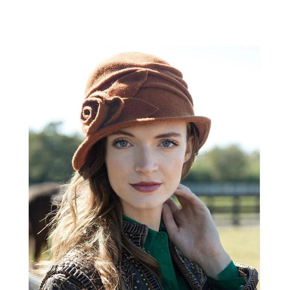 She’s beauty, she’s grace, she’s…you wearing this boiled wool cloche by Scala. This hat is perfect for a wedding or church, giving you that little something extra.