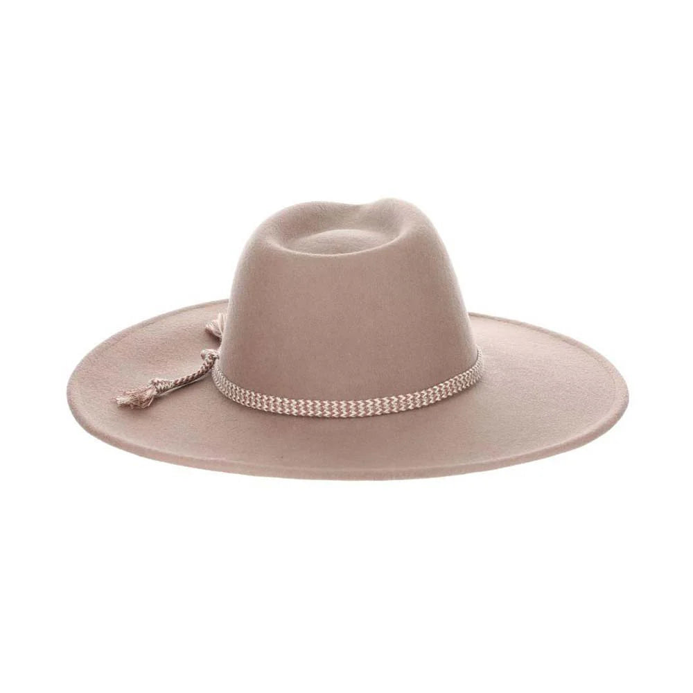 No one quite makes an entrance like a woman wearing a wide brim hat. The structured brim alludes confidence, unlike any other accessory out there. Cue the Camille by Scala. It's 4" brim and subtle blush hue is easily pairable, making it the perfect addition to your wardrobe.