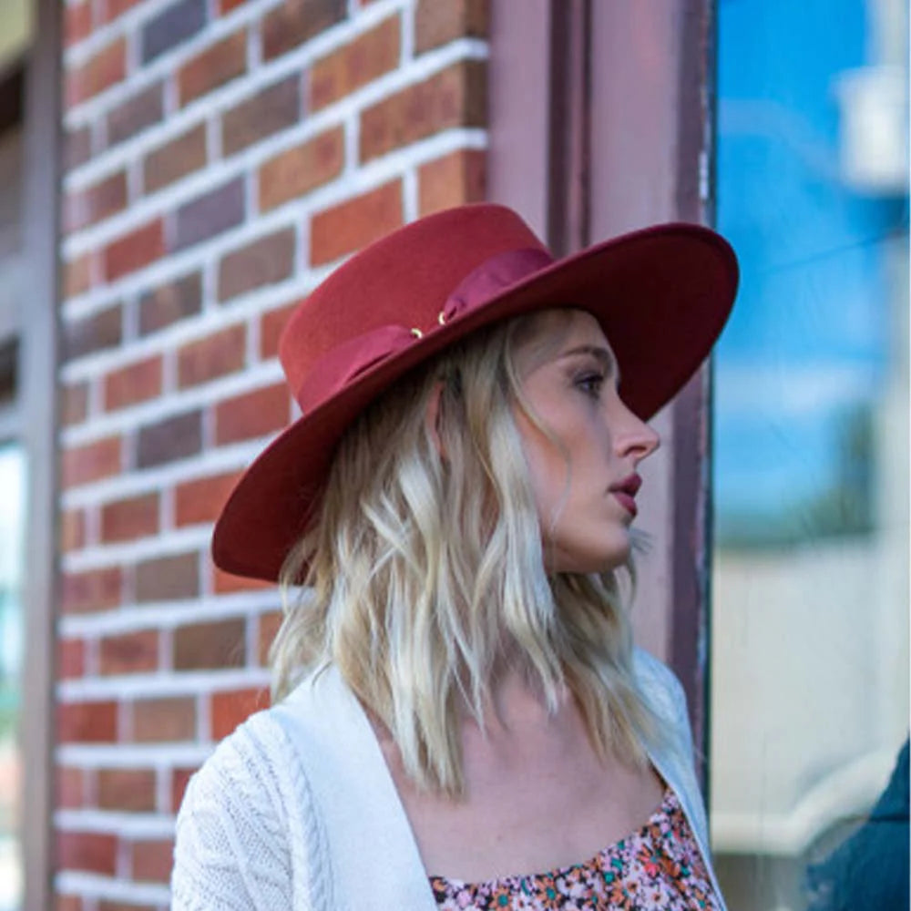 Autumn is the season of pumpkin spice, amber-colored leaves, and...wool felt wide brim hats. Designed in three fresh fall hues, the Mercedes wide brim is the perfect accessory for the season.