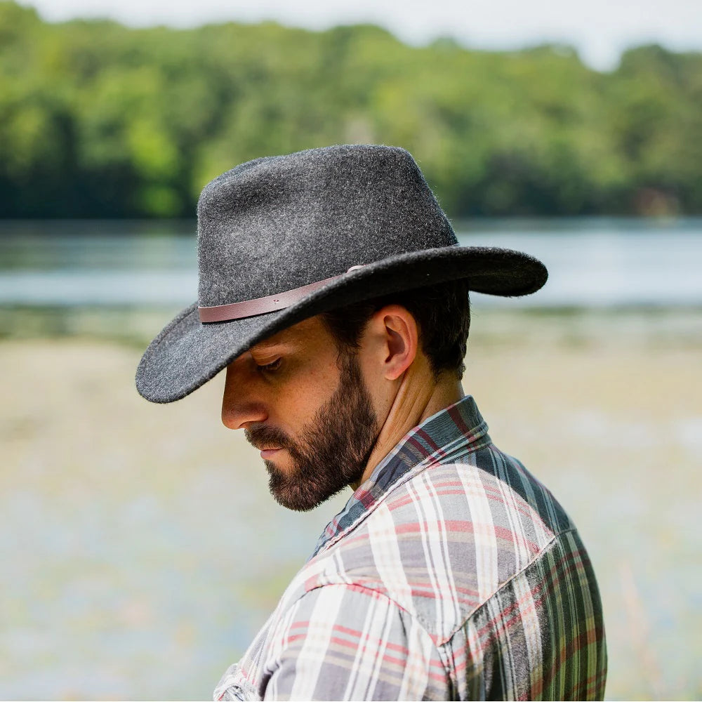 Simple, straightforward, and to the point. Just like you. This water repellent wool felt outback hat gets the job done, taking you from rigorous outdoor working days to relaxing evenings with the fam.