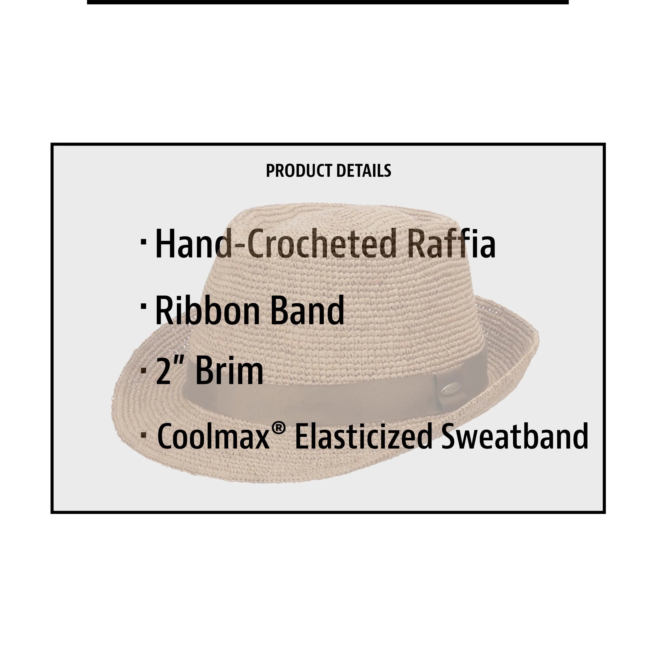 The ribbon on this raffia straw hat adds a finishing touch. This crushable hat is great for travel, making your beach days unforgettable.
